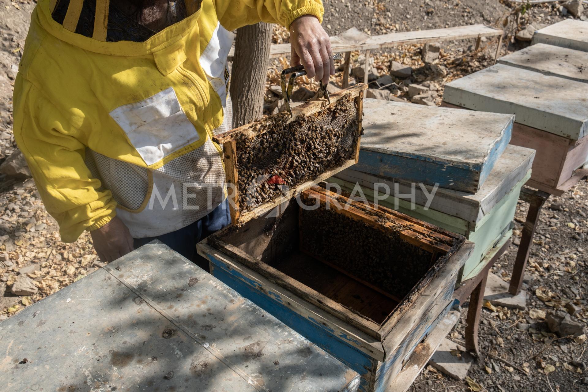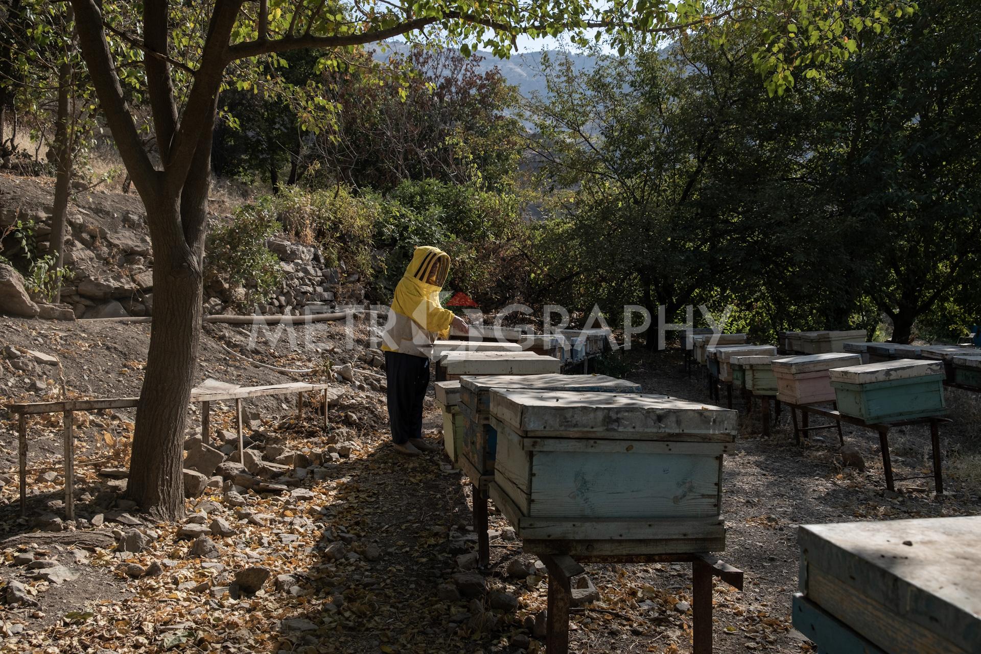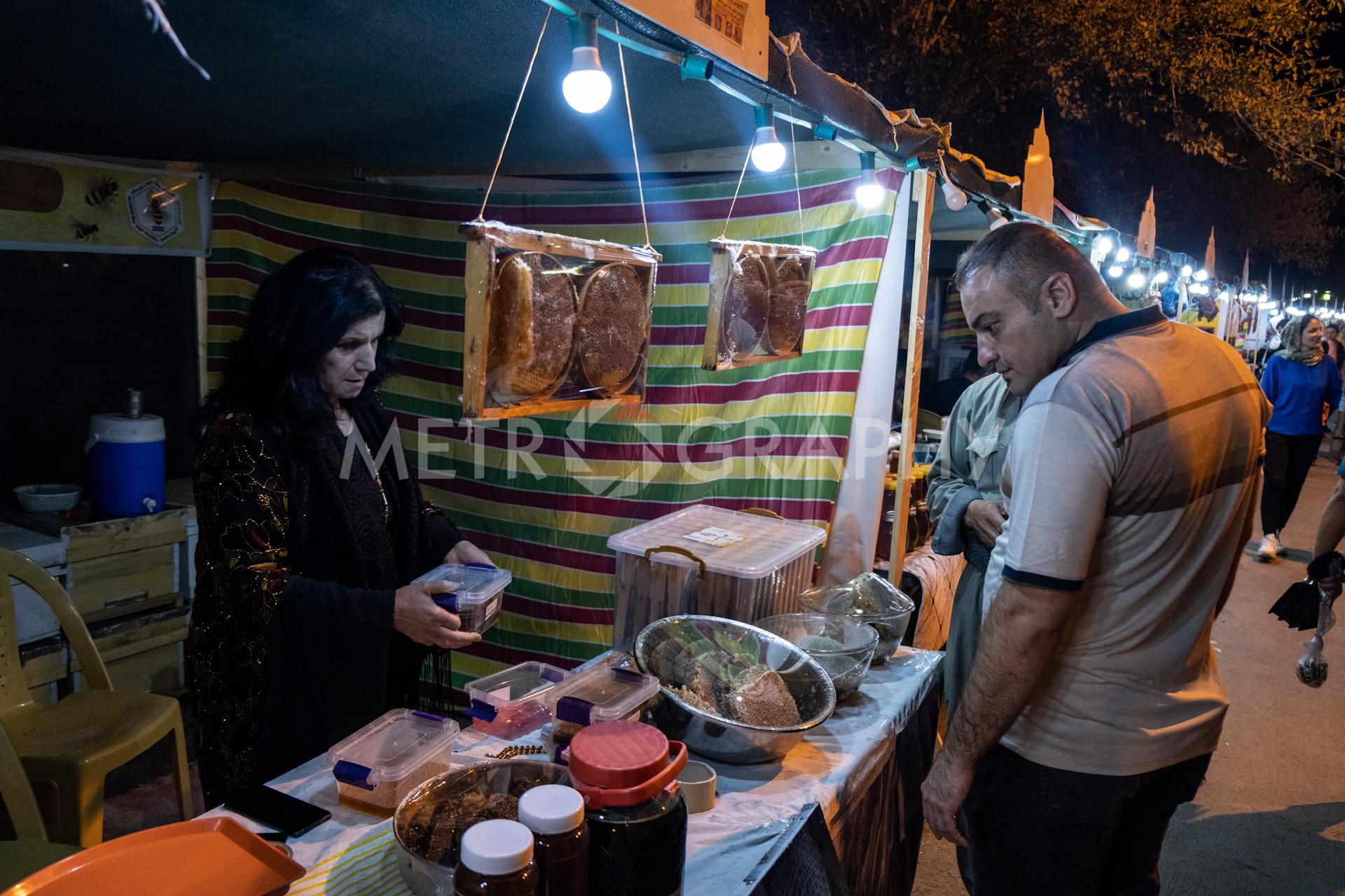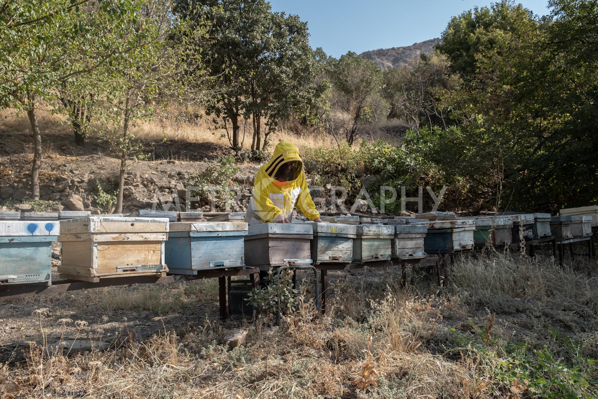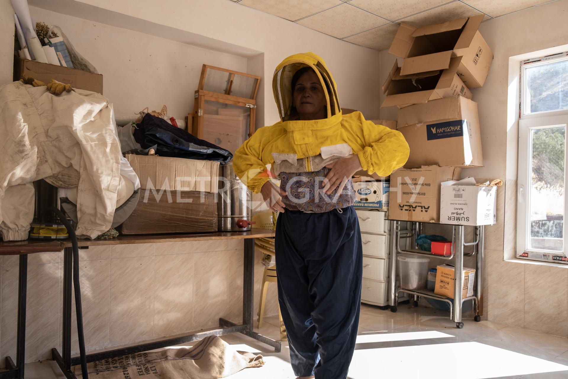 Khabat Karim Hassan, 62, has been in the beekeeping business since 1993. She began because of her husband’s influence and support, who is also a beekeeper. She supports her family financially through her work. Khabat has participated in many international and local festivals promoting her local produce. Khabat and her husband constantly attempt to raise Kurdistan society’s awareness of beekeeping, with an aim to make a culture of beekeeping that is also profitable. They share their knowledge by volunteering to teach university students in this area about agriculture and beekeeping. “I’ve always encouraged my daughters to start their own businesses and provide for themselves and their families. Regarding work, there is no distinction between men and women. Every woman who strives towards a goal should never let discouragements from society make them give up.” Photos: Zewan Sirwan/Metrography.