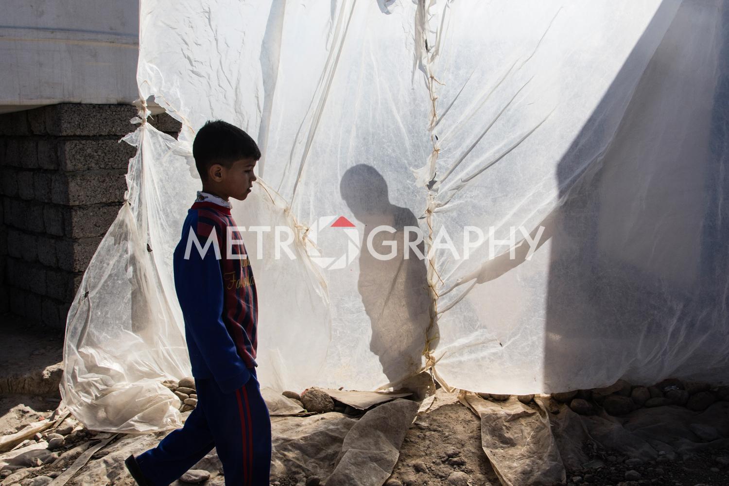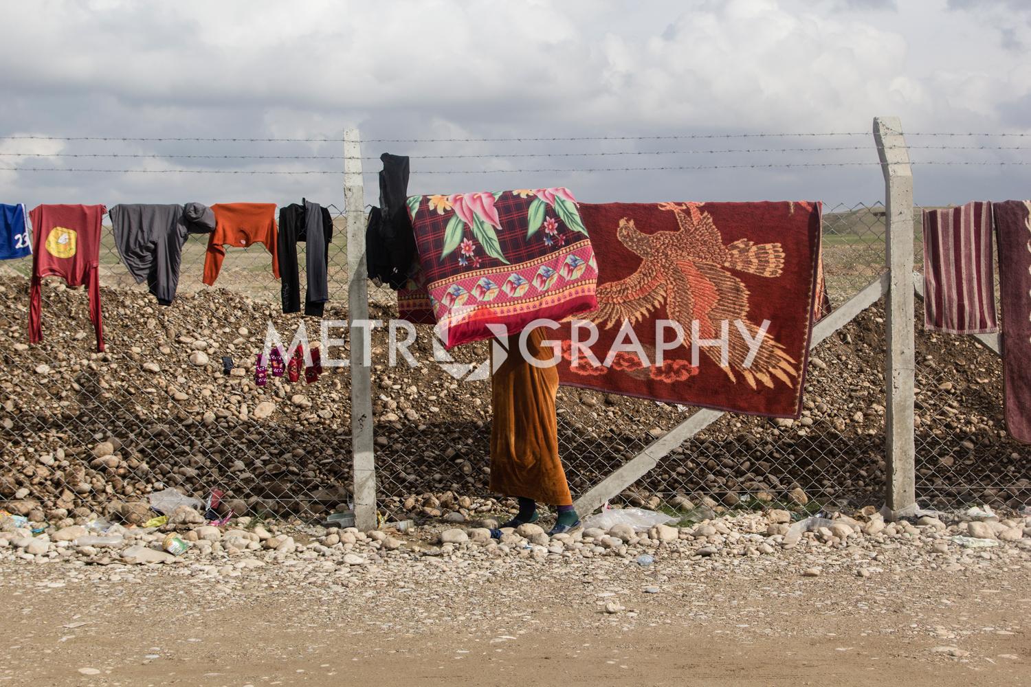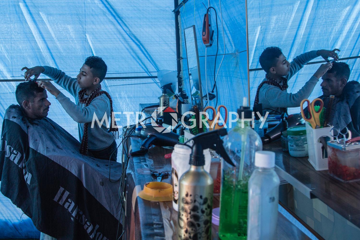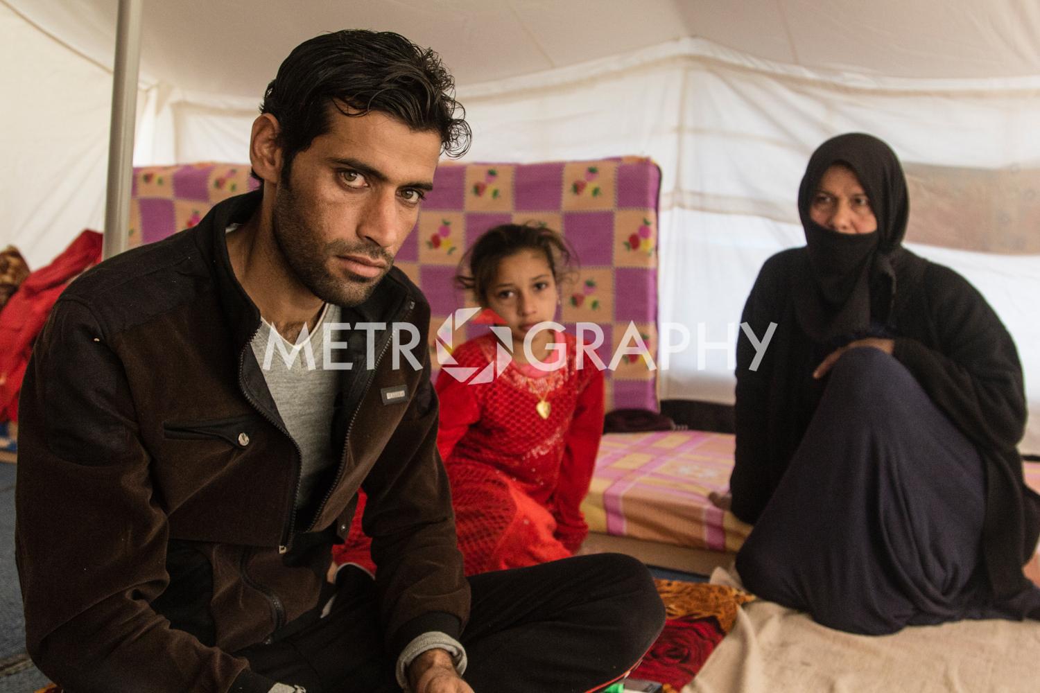 By a cluster of tents, teenagers gather to watch Marwan carefully razor marine cuts in his makeshift barbershop. No teenager here wants to be mistaken for a ‘Daesh’ member. Not far away Adem’s children are playing with stones as he looks on worriedly, he is Sudanese and name-calling because of their black skin is common. Adem came to Iraq to avoid civil war and poverty but didn’t expect his adopted home town of Tikrit to be overrun by ISIS. Across the camp in Sulaiman’s tent, the mood is somber. Hazar lays out the ID cards that belonged to his dead children. They were killed by aerial bombardment. “We put a white flag on our convoy of cars to show we are civilians,” he says, dejectedly. They were also denied entry to relatively safe Kurdistan, as Sunni Arabs the Kurds view them as possible ISIS infiltrators.